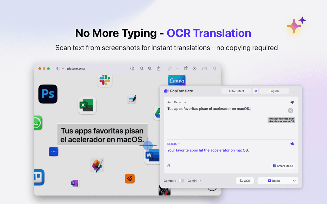 PopTranslate is an easy-to-use native app powered by multiple AI engines, helping you translate and communicate in different languages effortlessly.